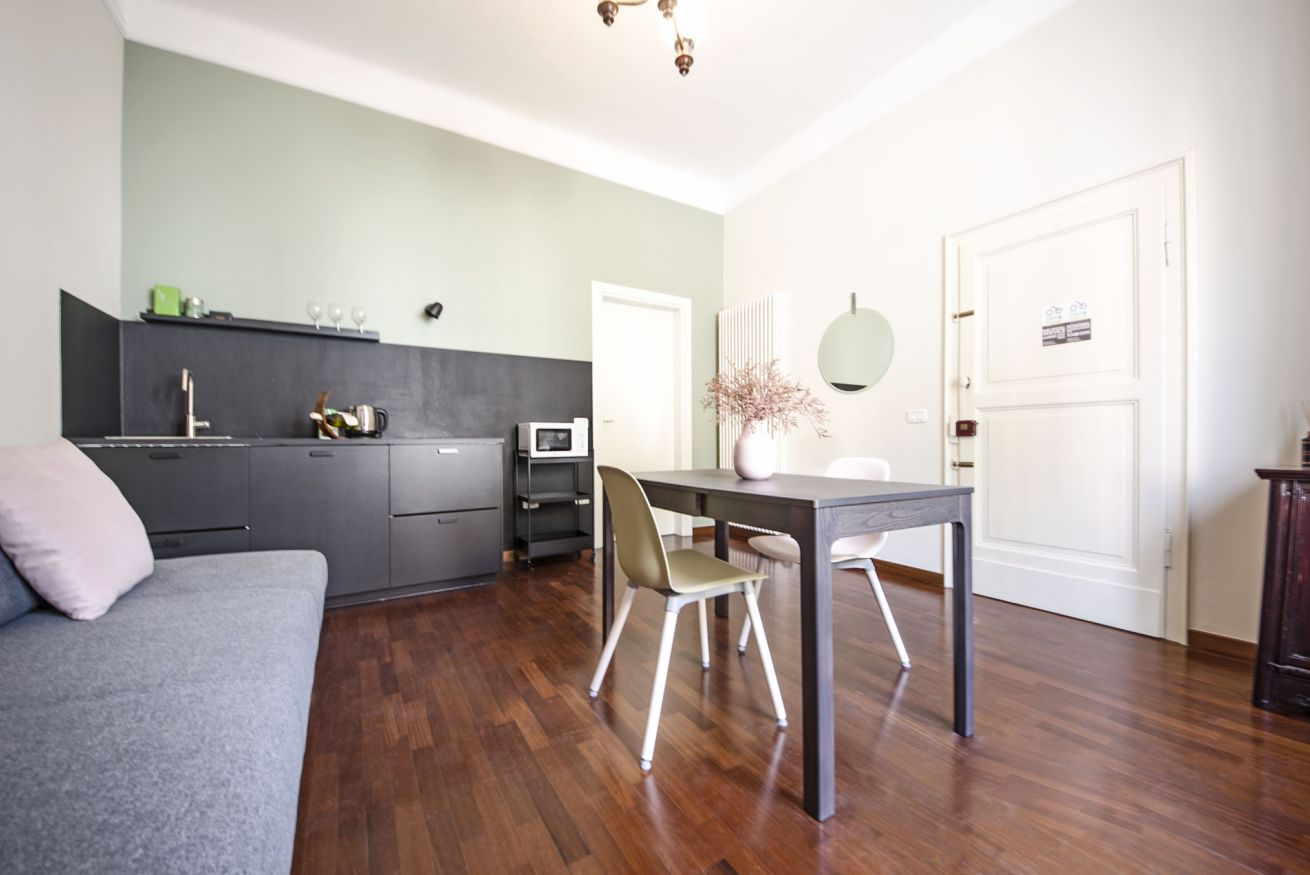 Delizioso appartamento , arredato con gusto, spazioso e solare. Posizionato in via strategica del centro della città, offre zona giorno con divano letto per una persona, angolo cottura attrezzato , camera matrimoniale comoda e spaziosa, bagno con doccia. La struttura è dotata di aria condizionata(servizio a pagamento).