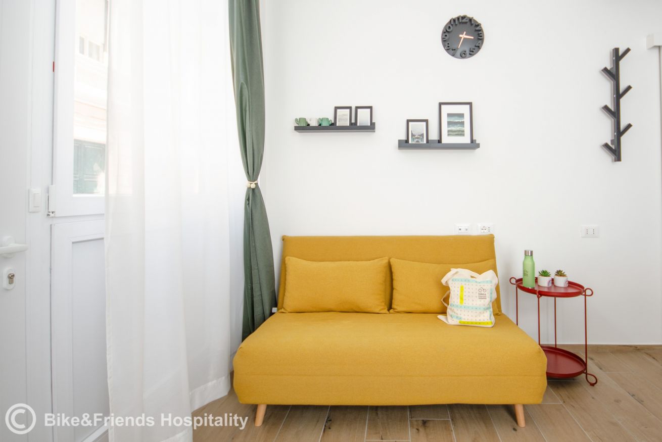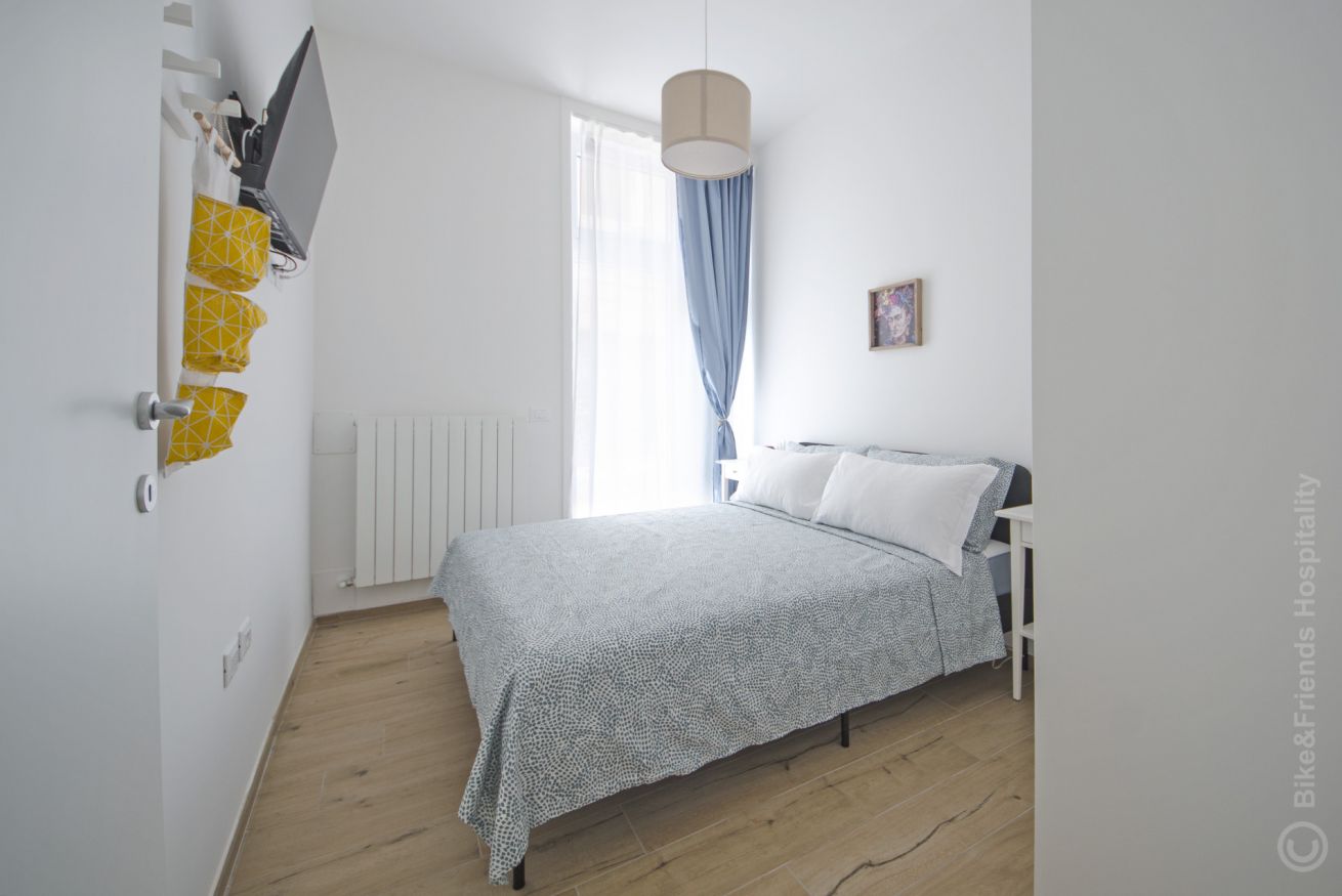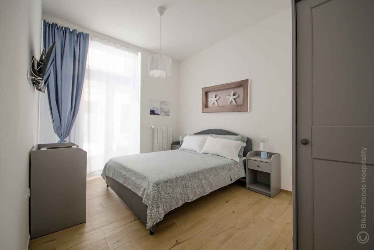 Questo appartamento centralissimo può ospitare comodamente fino a sei persone e può vantare un posto auto privato (molto raro in centro storico), arredi nuovi e curati, ricchezza di accessori: tre tv a schermo piatto, aria condizionata in ogni camera (servizio a pagamento) e lavatrice. Una vera rarità per una vacanza nel cuore storico della città, con tante comodità per potersi rilassare. La struttura offre una zona living con angolo cottura, due comode camere matrimoniali, un bagno con doccia. La sua posizione è ideale per abbandonare la macchina e vivere l'intera vacanza muovendosi a piedi ed in bicicletta. A due passi da tutti gli elementi di interesse: la spiaggia, il Teatro Rossini, Piazza del Popolo, le vivaci vie dello shopping.