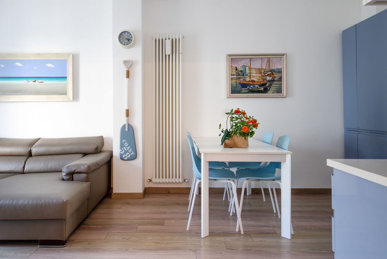 Splendido appartamento fronte mare. Arredato con buon gusto e completamente ristrutturato di recente offre tutti i confort per una vacanza perfetta al mare. E' composto da una camera matrimoniale, una camera con letto a castello, zona living con cucina attrezzata, divano e tv smart. Presente lavatrice, lavastoviglie, wi-fi.