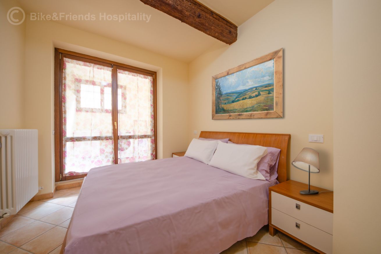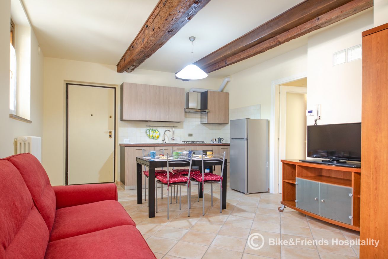 Luminoso appartamento in pieno centro storico, a due passi dal Teatro Rossini e dal Complesso Monumentale di San Giovanni. La struttura si compone di soggiorno con cucina attrezzata, un'ampia camera matrimoniale, una camera con letto a castello e un bagno. Il soffitto con travi a vista rende gli spazi ancora più suggestivi. Completa il tutto una veranda esterna privata che può servire da ricovero bici