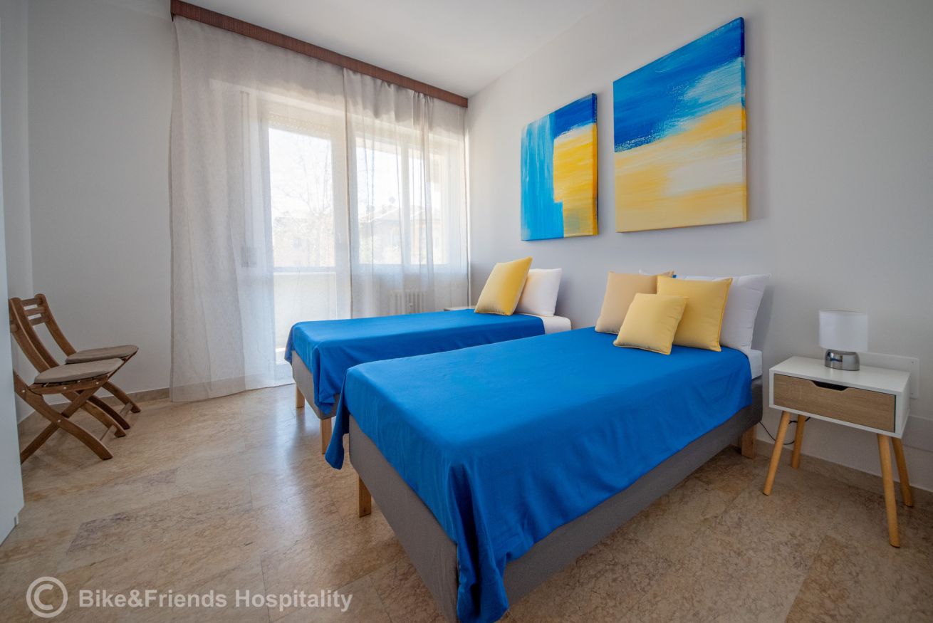 Luminoso appartamento di grandi dimensioni arredato a nuovo, composto da due spaziose camere, sala con divano letto, cucina abitabile e bagno, oltre a una meravigliosa terrazza attrezzata, ideale per godersi aperitivi e cene o semplicemente per stare in relax. E' dotato anche di aria condizionata (servizio a pagamento). Quello che lo rende unico è la sua posizione strategica: 50 metri dalla spiaggia e 5 minuti a piedi dal centro storico e dai i luoghi di maggiore interesse culturale, come la Piazza principale, i Musei Civici con la splendida collezione di maioliche rinascimentali e la Pala di Giovanni Bellini capolavoro assoluto del Rinascimento italiano; Casa Rossini; la Cattedrale con i suoi mosaici; Palazzo Perticari Signoretti, tornato agli albori dopo 10 anni di ristrutturazione; la Sinagoga e tanto altro. Uscendo dall’appartamento, ci si ritrova direttamente su Viale Trieste, la via principale del lungomare, a pochi passi dalla splendida “Palla di Pomodoro”, ormai simbolo della città e dal Villino Ruggeri, uno degli esempi più rilevanti dello stile Liberty. Durante i mesi estivi Viale Trieste diventa isola pedonale e si riempie di tavoli e sedute dei numerosi locali, pronti a soddisfare le esigenze di tutti i visitatori. Alcuni stabilimenti balneari, soprattutto sul Lido di Levante, rimangono aperti fino a notte proponendo cene ed eventi musicali. Una delle serate più attese dell’estate è quella del 10 di agosto, la notte delle stelle cadenti, dove tutto il litorale è illuminato solo dalle candele e si organizzano cene in spiaggia rigorosamente in abito bianco! Veramente suggestiva