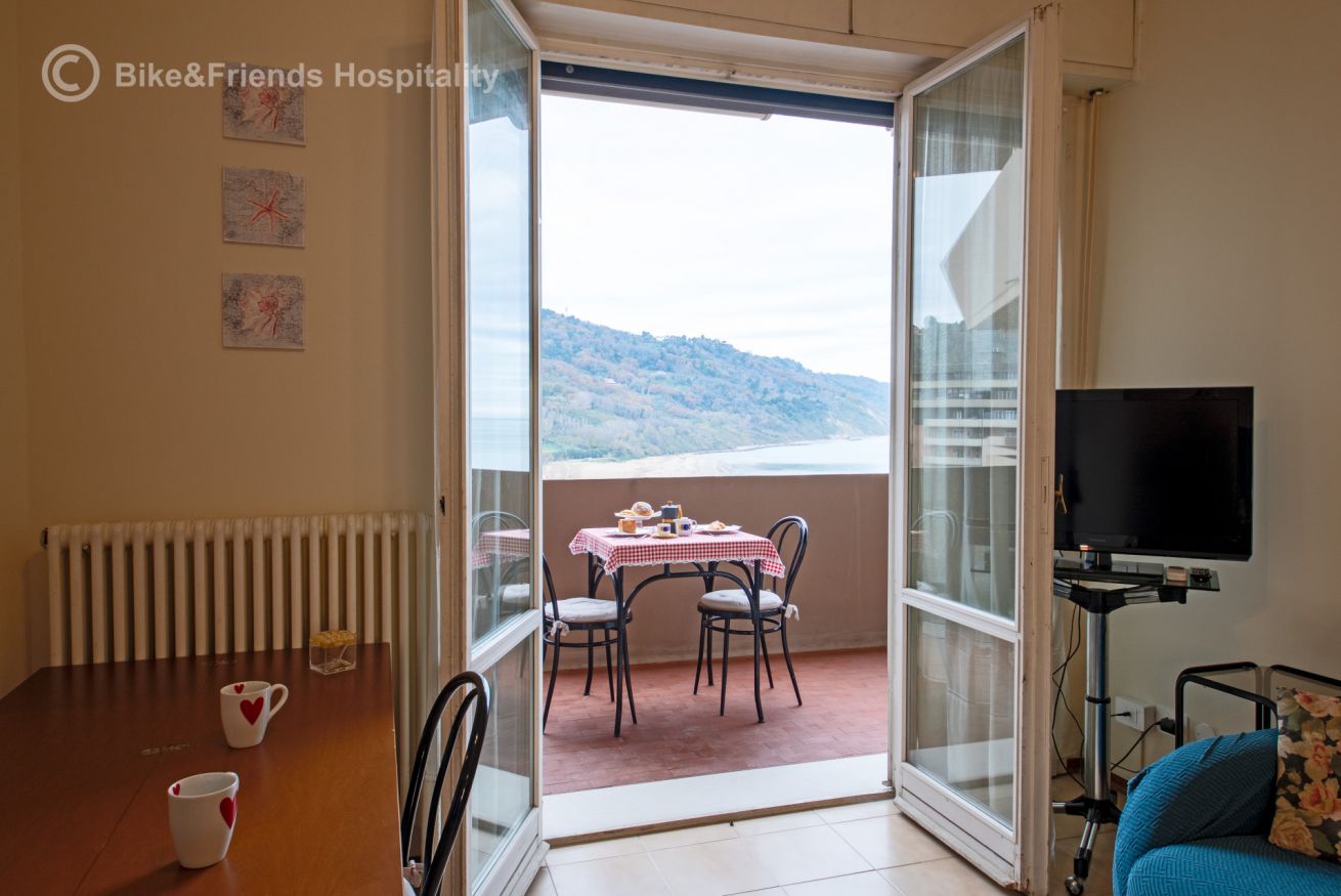 Panoramico appartamento al non piano con ascensore da cui è possibile godere di una spettacolare vista sul porto e sulla spiaggia per tutta l'ampiezza della baia. L’abitazione è composta da un’ampia sala con angolo cottura, una camera, un bagno e una splendida terrazza in cui è possibile trascorrere piacevoli serate all'ora del tramonto. L’appartamento è situato in uno dei quartieri più caratteristici della città: Baia Flaminia. Questo meraviglioso angolo di Pesaro è situato alle pendici del Parco Naturale del Monte San Bartolo e offre uno scenario veramente unico, grazie alla sua particolare esposizione a nord che regala un panorama mozzafiato di alba e tramonto sul mare. La spiaggia di Baia Flaminia è larga e protetta dall’erosione del mare grazie alla sua posizione riparata e permette di godere di scorci panoramici suggestivi. La spiaggia è dotata sia di stabilimenti balneari ben attrezzati, sia di spiagge libere, anche dedicate agli amici a quattro zampe, tra cui quella di Baia Flaminia Nord, che si incunea ai piedi della falesia del San Bartolo in un ambiente via via sempre più selvaggio ed incontaminato. Dietro la spiaggia Panoramica di Baia Flaminia si estende un quartiere vivace e moderno con numerose attività commerciali, ristoranti e locali notturni per trascorrere serate divertenti. Oltre allo splendido mare, Baia Flaminia rappresenta anche il punto di partenza per praticare trekking e biking, e una vasta gamma di attività di intrattenimento grazie alla numerosa offerta di locali di ogni tipo. L’appartamento è in prossimità della pista ciclo/pedonale che permette di raggiungere tutti i luoghi di maggior interesse culturale come i Musei Civici con la splendida collezione di maioliche rinascimentali e la Pala di Giovanni Bellini con l'Incoronazione della Vergine, capolavoro assoluto del Rinascimento italiano; Casa Rossini; la Cattedrale con i suoi mosaici; Palazzo Perticari Signoretti, tornato agli albori dopo 10 anni di ristrutturazione; la Sinagoga e tanto altro. Durante il periodo estivo c’è anche un servizio navetta gratuito che collega Baia Flaminia al Litorale di Levante e di Ponente.