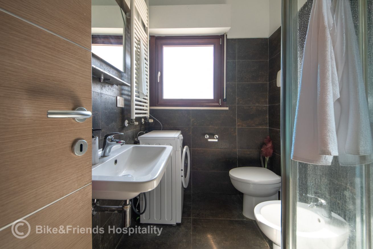 L'edificio si trova al secondo piano senza ascensore di una piccola palazzina, è dotato di un posto auto coperto ed è vicino ad un grande parcheggio libero. Dista pochi passi dalla pista ciclo pedonale che costeggia la ferrovia e che collega il lido e il porto di Fano con quello di Pesaro.