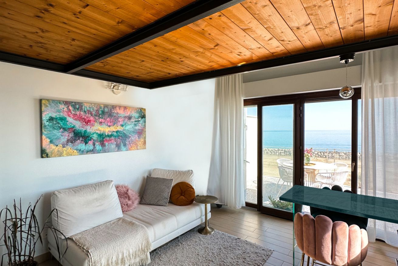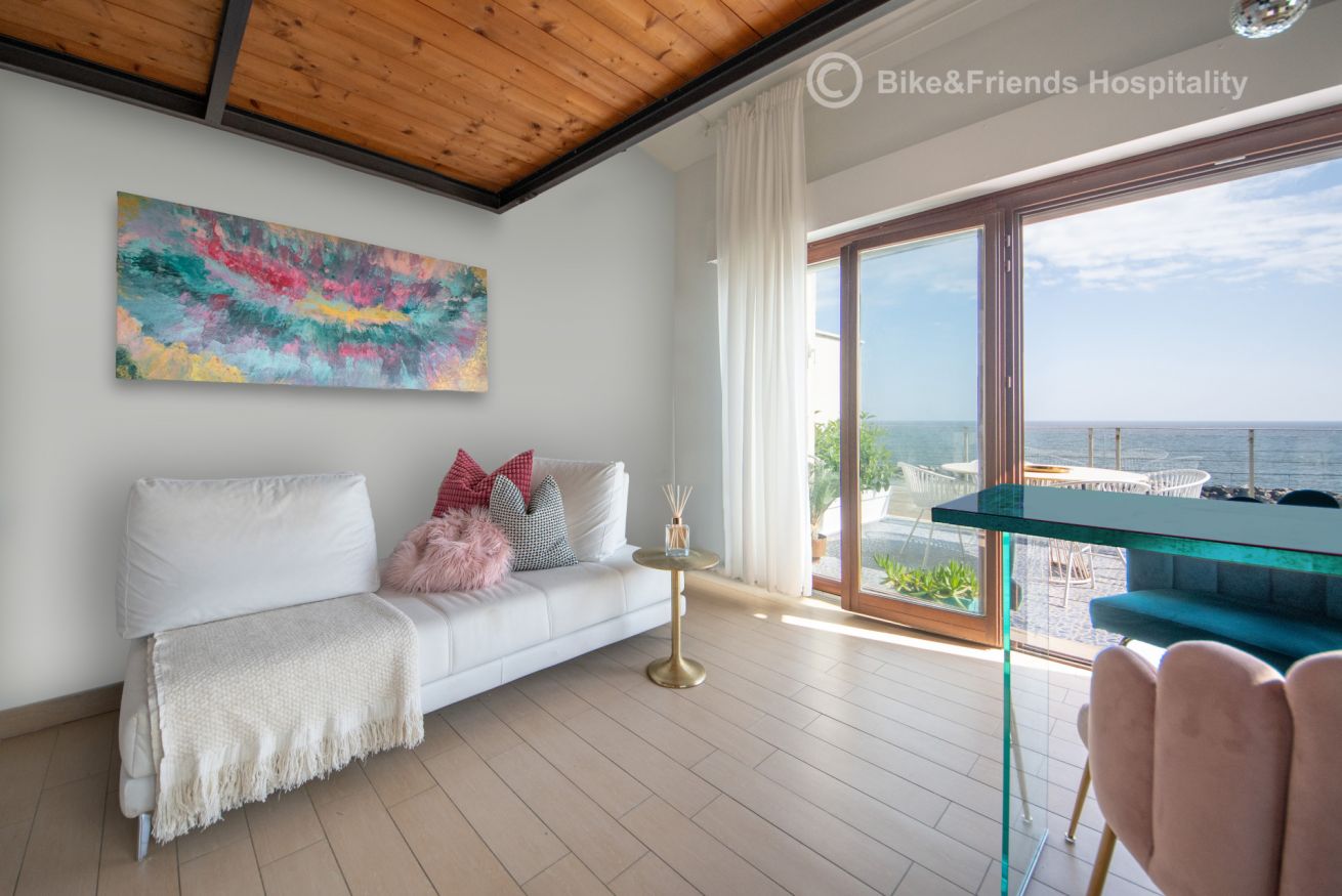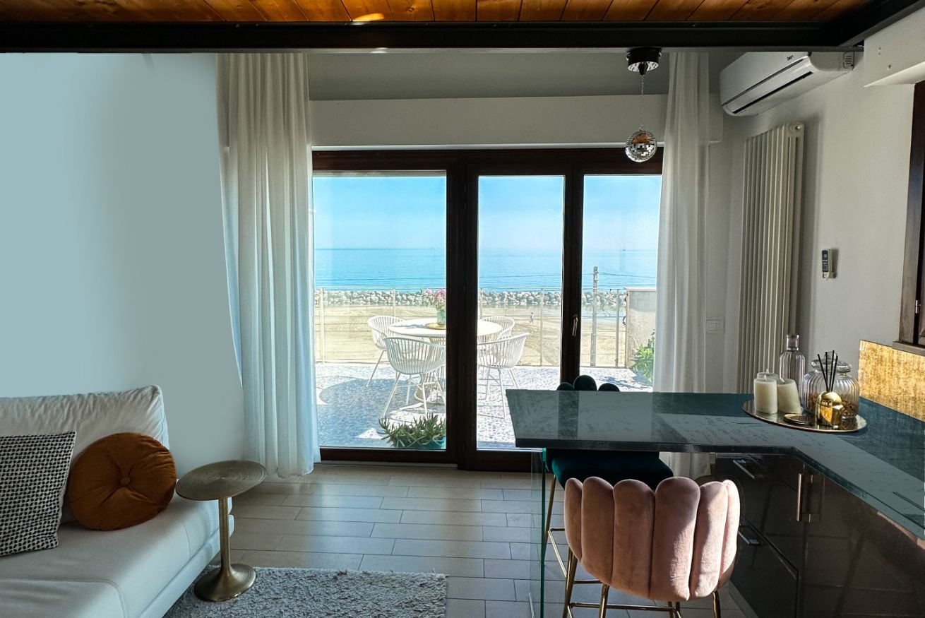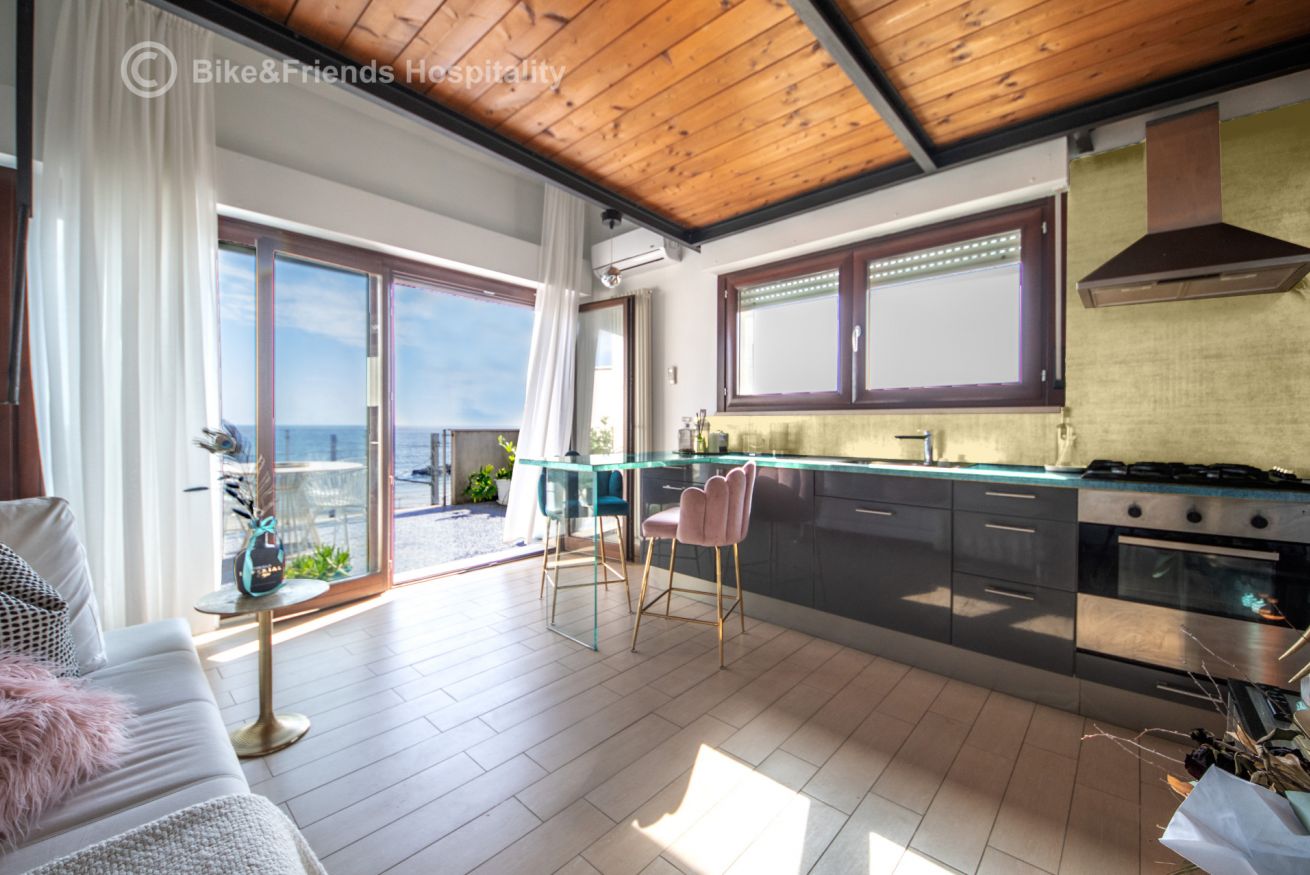 Delizioso appartamento appena ristrutturato e arredato con gusto composto da una zona giorno con salotto e cucina, una camera da letto e una bella terrazza arredata che si affaccia direttamente sul mare, ideale per godersi un aperitivo o una cena dopo una giornata di mare o di visita della città. La struttura è dotata anche di aria condizionata (servizio a pagamento).